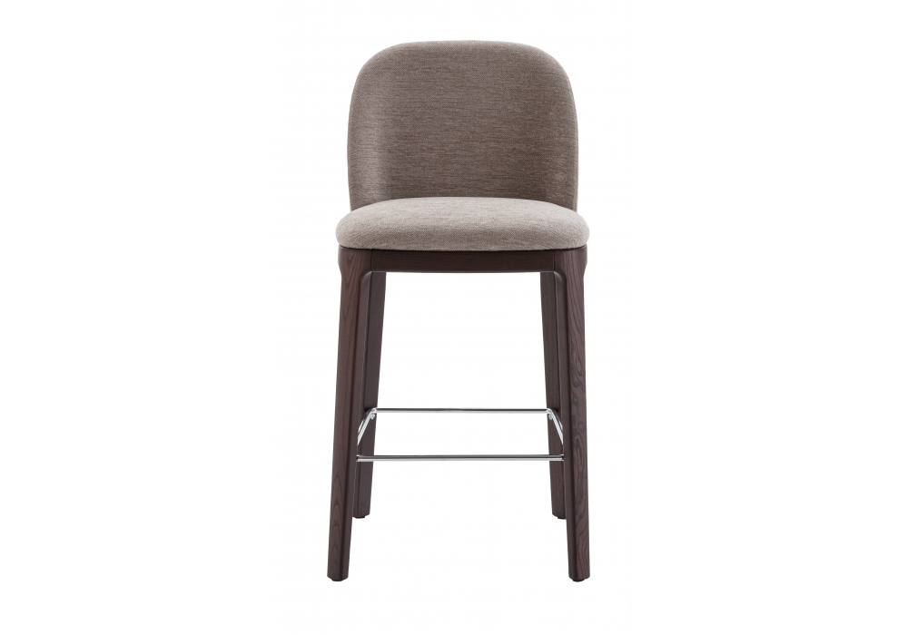 Joelle von Dall'Agnese entworfen, ist ein gepolsterter Hocker mit Holzrahmen und Bezug aus Stoff, Leder oder Ökoleder. Fersenpolster aus Chrom.