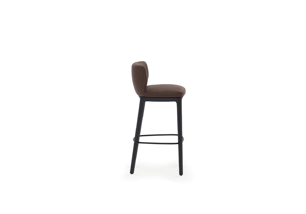 Ami von Yabu Pushelberg für DePadova entworfen, ist ein Hocker mit Stahlgestell und elastischen Gurten, gepolstert mit Polyurethanschaum und Polyesterwatte, innen mit Samt bezogen. Die Beine sind aus massiver, schwarz gebeizter Esche mit Anilin- und transparentem Finish, ergänzt durch eine Fußstütze aus schwarz lackiertem Stahl. Erhältlich mit abnehmbarem Stoffbezug oder festem Bezug aus Leder oder Samt.