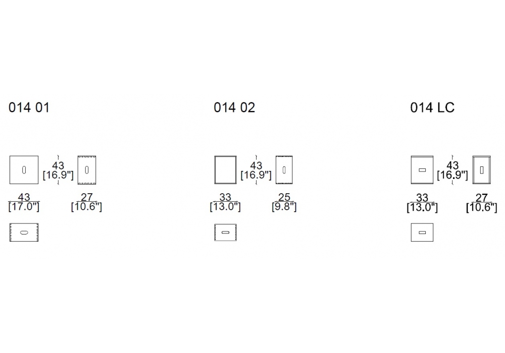 LC14 von Le Corbusier für Cassina entworfen, ist ein Hocker aus Holz. Der Hocker Maison Du Brésil besteht aus naturbelassener Eiche, der Hocker Cabanon aus naturbelassener Kastanie und der Hocker Nantes Rezé aus braun und blau lackierter Eiche.