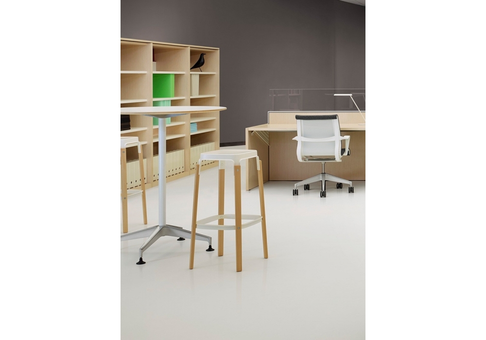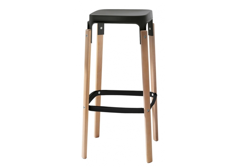 Steelwood von Ronan & Erwan Bouroullec für Magis entworfen, ist ein Hocker mit Beinen aus massiver Natur-, Nussbaum- oder lackierter Buche. Sitz und Fußstütze aus polyesterlackiertem Stahlblech. Erhältlich in verschiedenen Ausführungen.