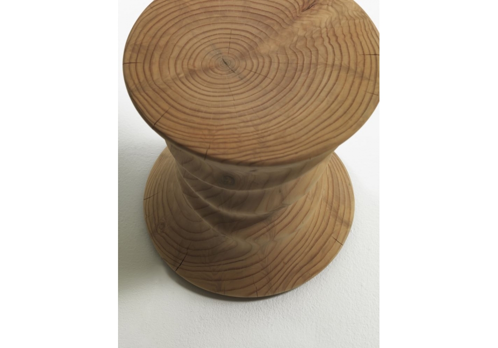 Squeeze von Maria Saadeh für Riva 1920 entworfen, ist ein Hocker aus massivem duftendem Zedernholz, der aus einem einzigen Block gearbeitet ist und sich durch eine dynamische konzentrische Spirale entwickelt.