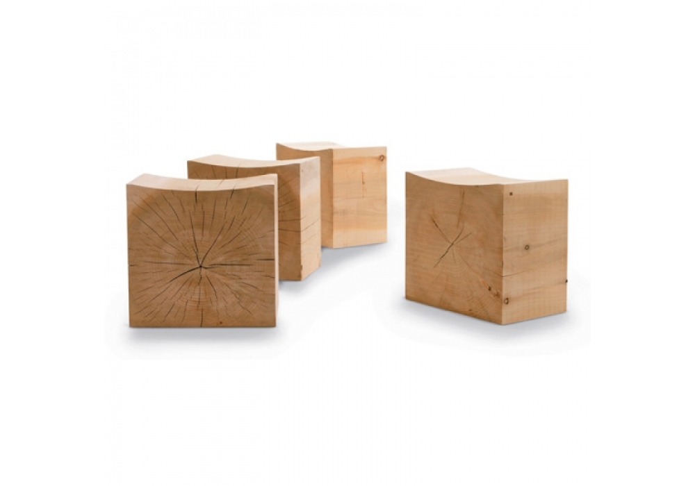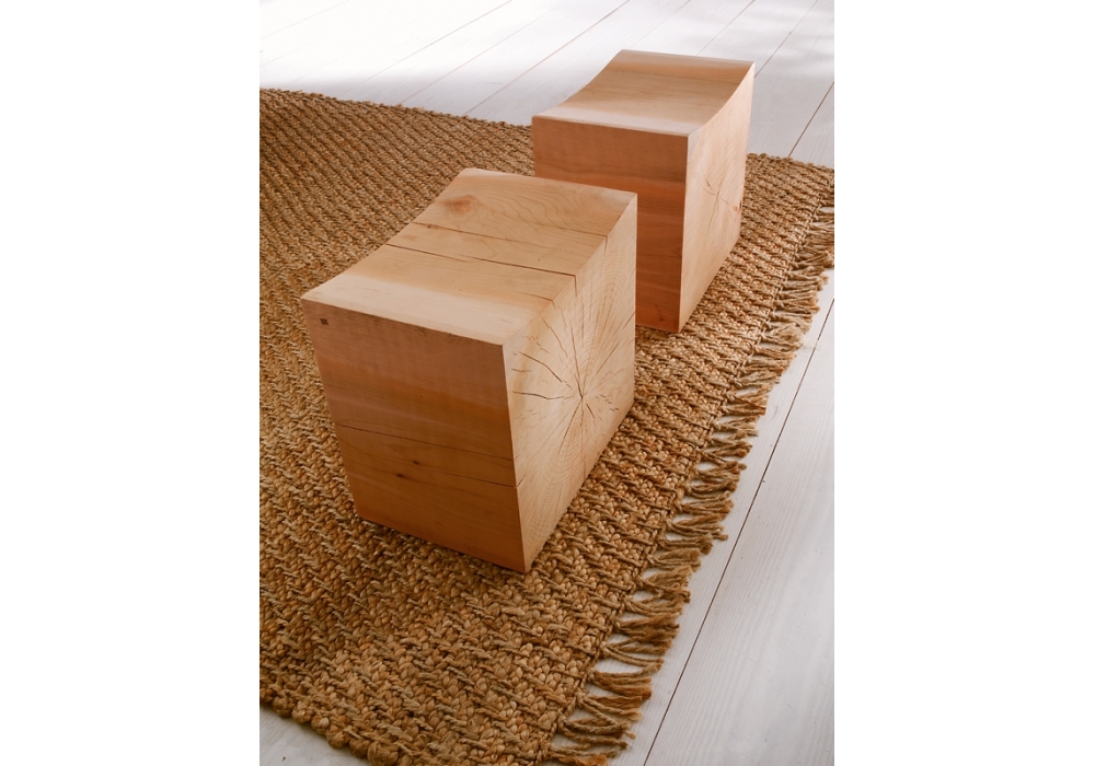 Napa Small von Terry Dwan für Riva 1920 entworfen, ist ein Hocker aus massivem duftendem Zedernholz, der aus einem einzigen Block gearbeitet ist und sich durch einen ergonomischen konkaven Sitz auszeichnet.