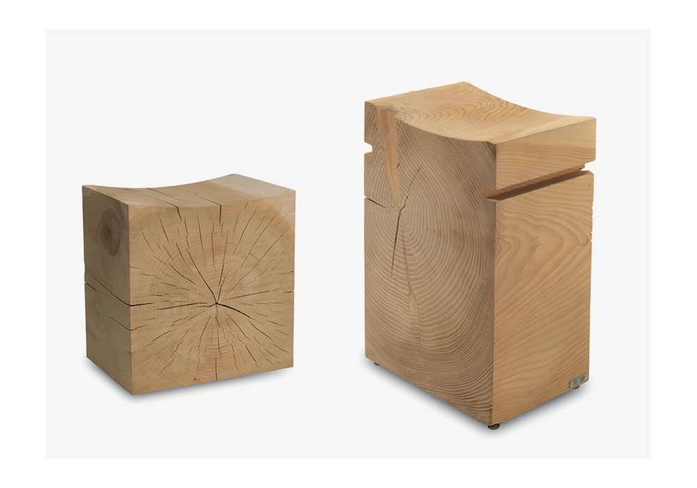 Napa Big von Terry Dwan für Riva 1920 entworfen, ist ein Hocker aus massivem duftendem Zedernholz, der aus einem einzigen Block gearbeitet ist und sich durch einen ergonomischen konkaven Sitz auszeichnet.