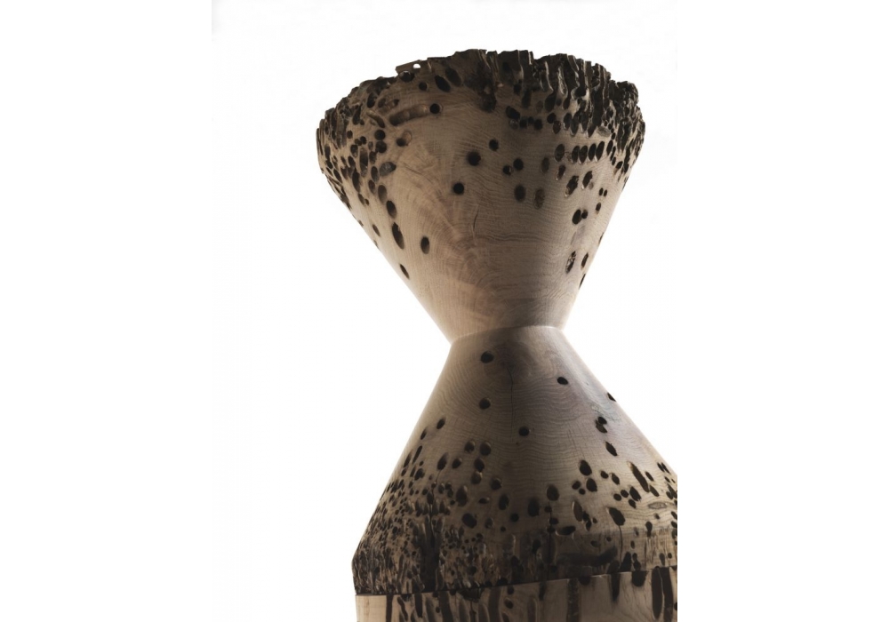 Bricolages von Mario Botta für Riva 1920 entworfen, ist ein hoher Hocker aus massivem Briccola-Holz, dessen Design eine Hommage an Brancusi ist.
