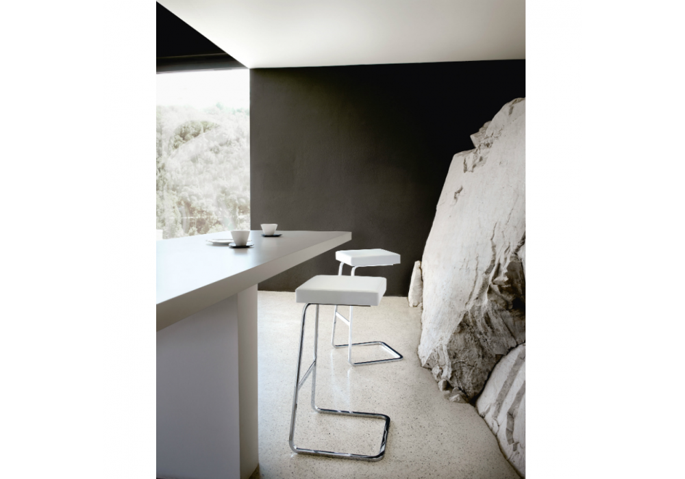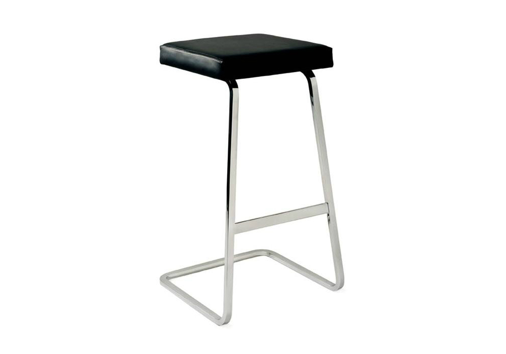 Four Season von Ludwig Mies van der Rohe für Knoll entworfen, ist ein Hocker mit einem Stahlrohrrahmen aus poliertem Chrom und einem gepolsterten Ledersitz.