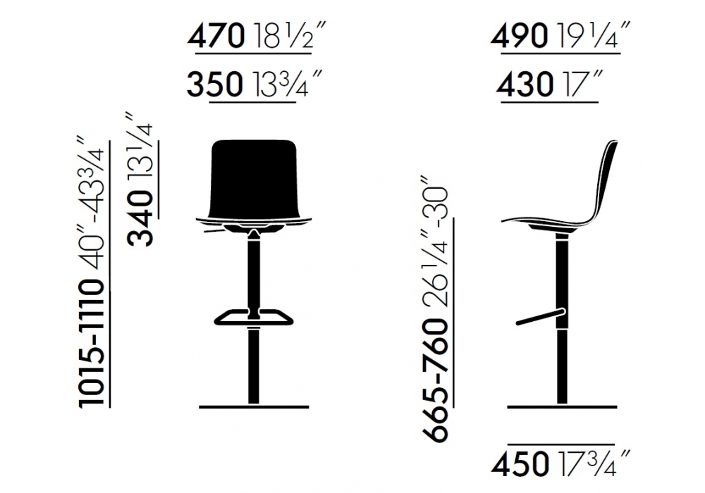 HAL Ply Barstool: Sitzschale: Schichtholz. Untergestell: höhenverstellbares StahlrohrUntergestell, Gasfeder pulverbeschichtet basic dark, Verbindungsrohr und Fussstütze Stahlrohr verchromt mit Rutschhemmung.