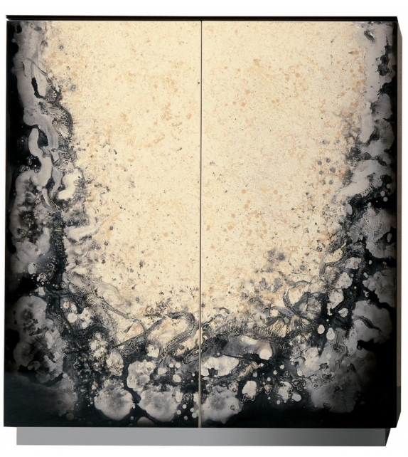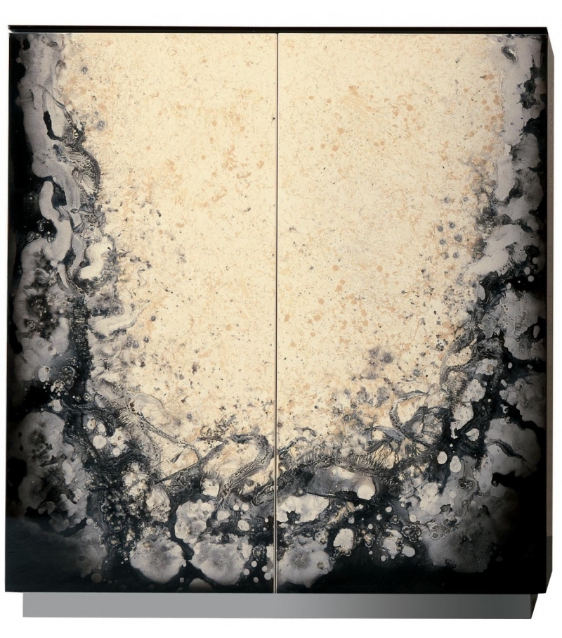 Atlanta von Rugiano entworfen, ist ein Barschrank mit Struktur in Hochglanzlack und Türen mit Dekoration in verschiedenen Ausführungen. Details aus bronziertem Messing oder Chrom.