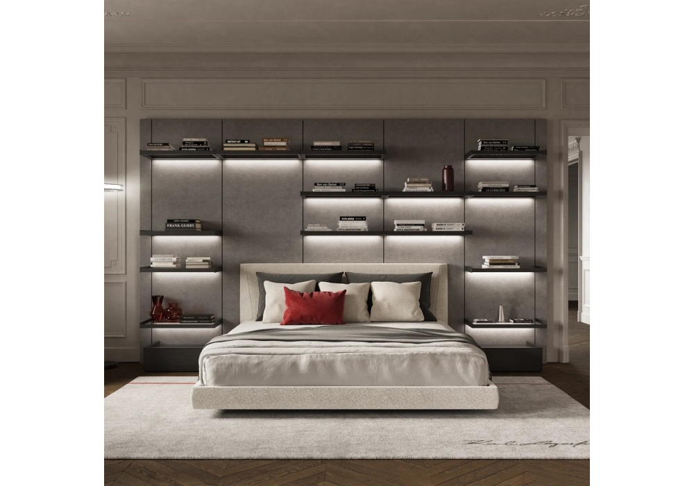 Saint-Germain, von Matteo Nunziati für Karl Lagerfeld Maison entworfen, ist ein Bett mit Kopfteil und Bettrahmen, gepolstert mit Bezug aus Leder oder Stoff. Verfügbar in verschiedenen Größen.