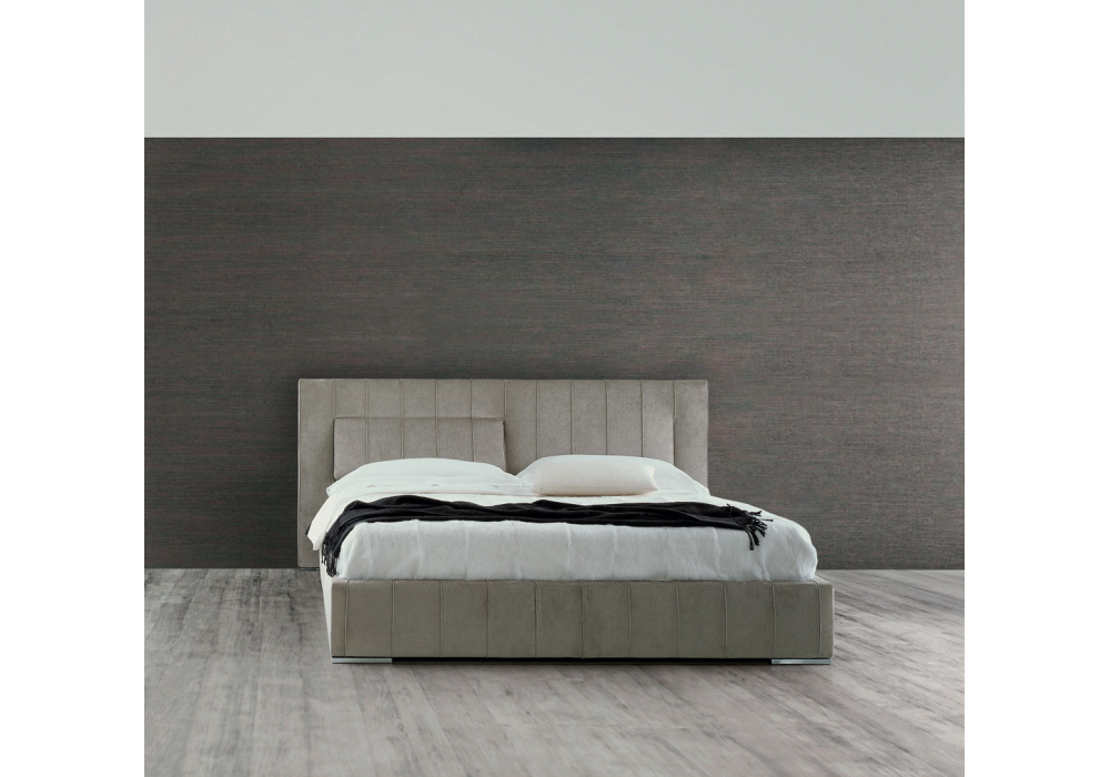 High-Wave von Hannes Wettstein für Molteni&C entworfen, ist ein gepolstertes Bett mit Behälter in klassischer Form und gemessenen Proportionen, bereichert durch die vertikale Faltung des Kopfteilbezugs. In der Version mit Mechanismus kann der innere Teil des Kopfteils geneigt werden, um eine modulare Unterstützung zu bieten. Das Bett kann dank der Querstreben, die die Führungen verbinden, ganze oder geteilte Lattenroste aufnehmen und ihre Höhe kann angepasst werden. Bezug aus Stoff oder Leder.