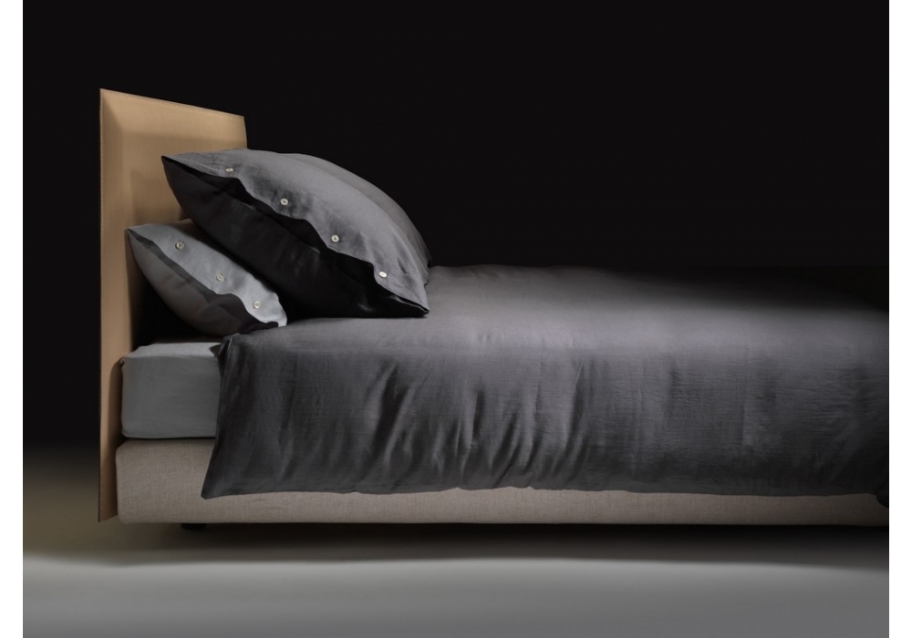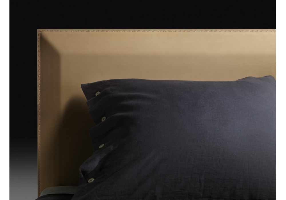 Eden is a bed designed by Antonio Citterio for Flexform. Headboard in leather. Bed base cover available in fabric or leather. Mattress not included.
