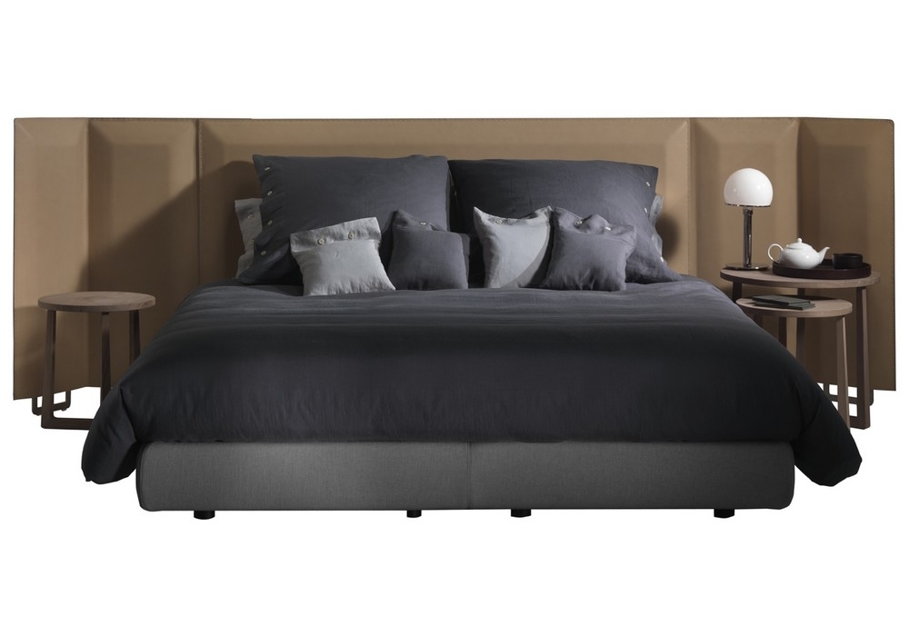 Eden Plus is a bed designed by Antonio Citterio for Flexform. Headboard in leather. Bed base cover available in fabric or leather. Metal legs. Mattress not included.