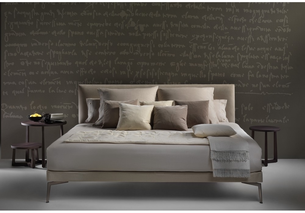 Feel Good Ten is a bed designed by Antonio Citterio for Flexform. Base: metal frame covered in fabric or leather. Head: wood with polyurethane padding covered with a protective fabric. Available with fabric or leather, with removable covers. Feet: metal. Mattress not included.