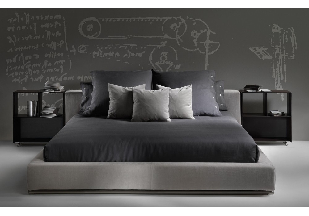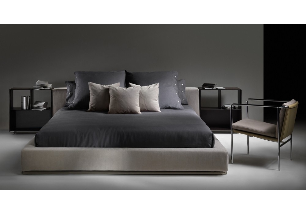 Groundpiece is a bed designed by Antonio Citterio for Flexform. Base with platform fitted with wooden slats. Headboard: in wood with polyurethane padding covered with a protective fabric lining. Feet: in metal treated with epoxy lacquer. Removable fabric or leather covers. Mattress not included.
