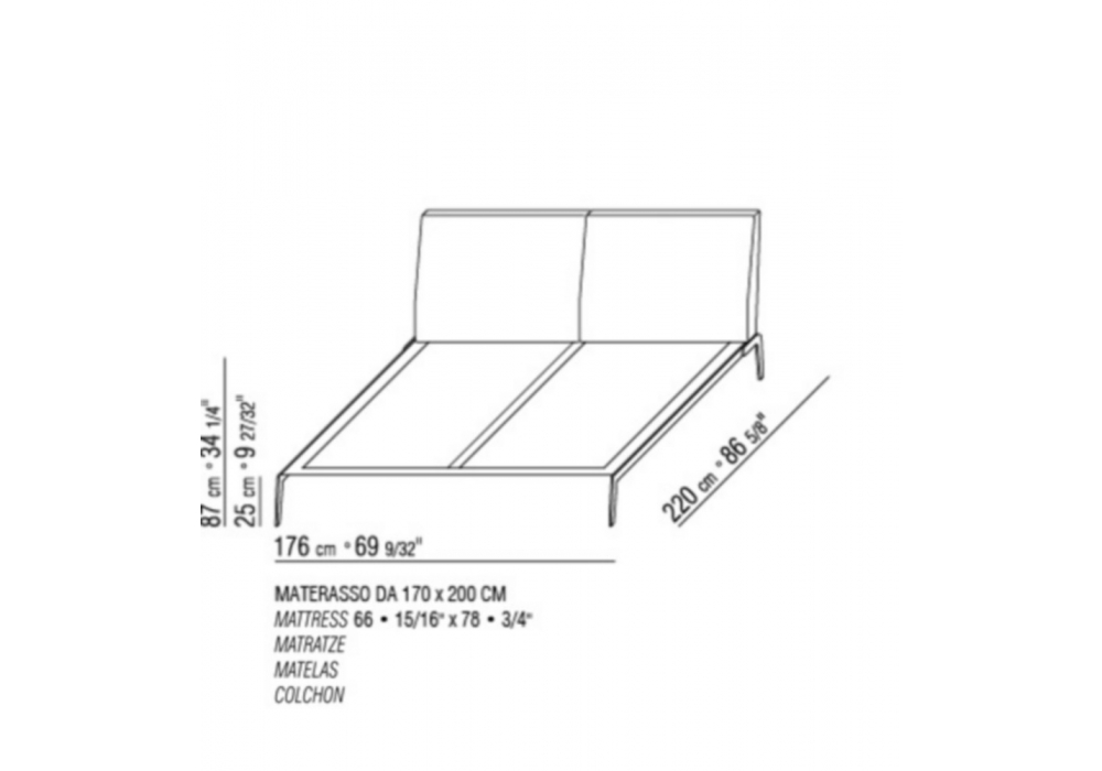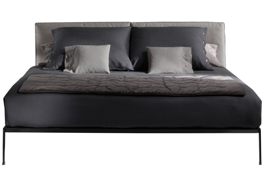 Lifesteel is a bed designed by Antonio Citterio for Flexform. Base frame: in metal covered with hide leather. Base: with platform in wood with polyurethane padding covered with a protective fabric lining. Headboard: metal insert with polyurethane and dacron padding, covered with a protective fabric lining. Feet: in metal. Mattress not included.