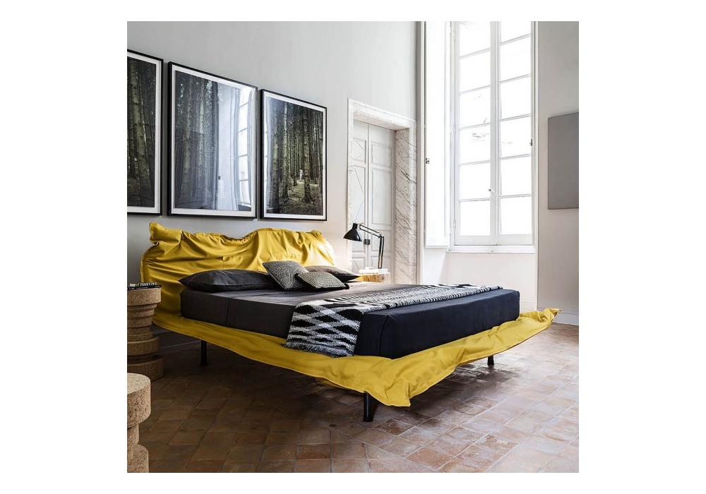 Big Hug von Claudio Bitetti für Mogg entworfen, ist ein gepolstertes Bett, das nach Wunsch modelliert werden kann, mit abnehmbarem Bezug, komplett mit Buchenholzlattenrost und anthrazit lackierten Füßen. Verfügbar in mehreren Ausführungen und Abmessungen.