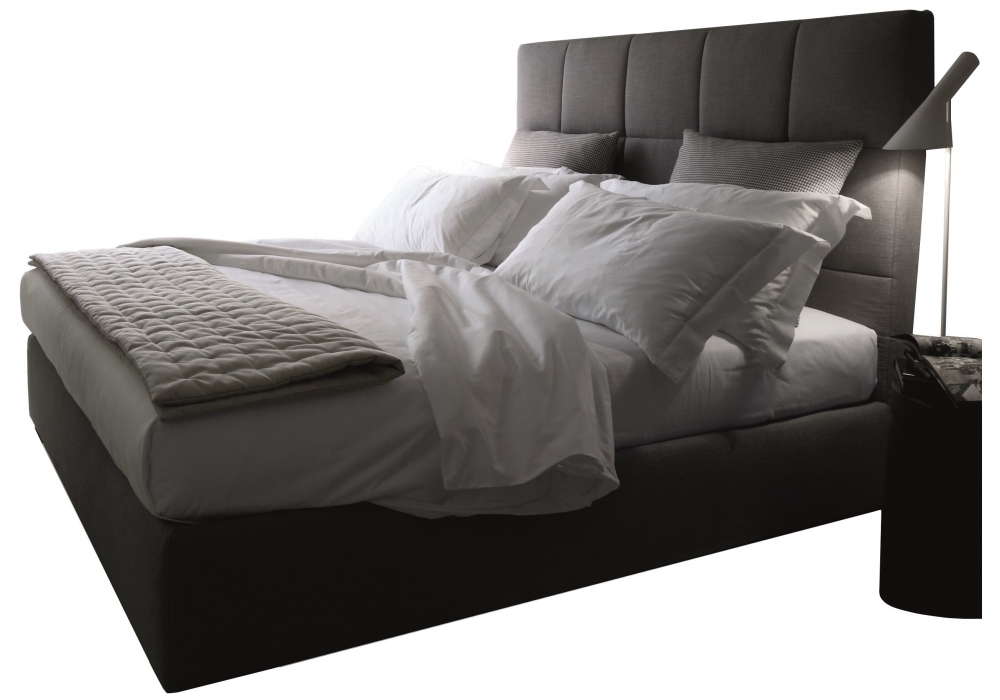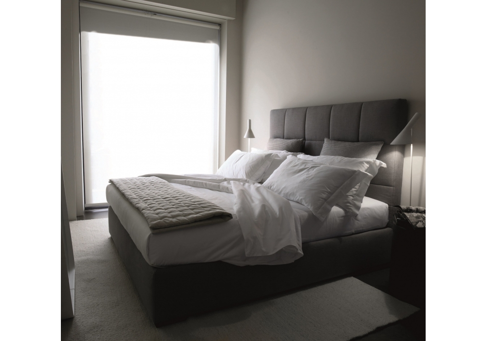 Bardò von Andrea Parisio für Meridiani ist eine Gepolstertes Bett mit Abziehbarer Bezug und Fester Lederbezug. Demontierbare Bettseiten (gepolsterte Holzflächen) mit mittlerer Mittelstange aus Metall. Holzfüße black, light und almond gebeizt.