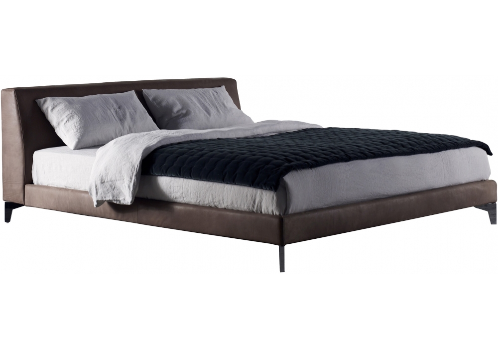 Louis Up Bed von Andrea Parisio für Meridiani ist eine Gepolstertes Bett mit Abziehbarer Bezug und Fester Lederbezug. Demontierbare Bettseiten (gepolsterte Holzflächen) mit mittlerer Mittelstange aus Metall. Metallfüße.