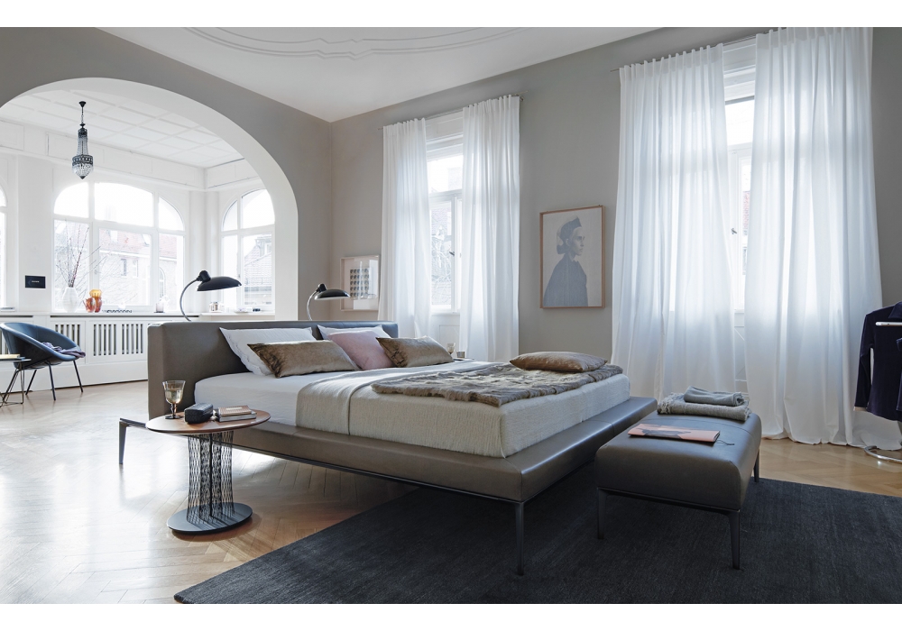 Jaan von Eoos für Walter Knoll entworfen, ist ein schönes Bett mit Untergestell aus pulverbeschichtetem Aluminium verfügbar in 2 verschiedenen Ausführungen, Kopfteil und Rahmen gepolstert mit natürlichen Stoffen oder Ledern. Auch verfügbar in verschiedenen Größen. Synthetische Gleiter. Matratze nicht enthalten.