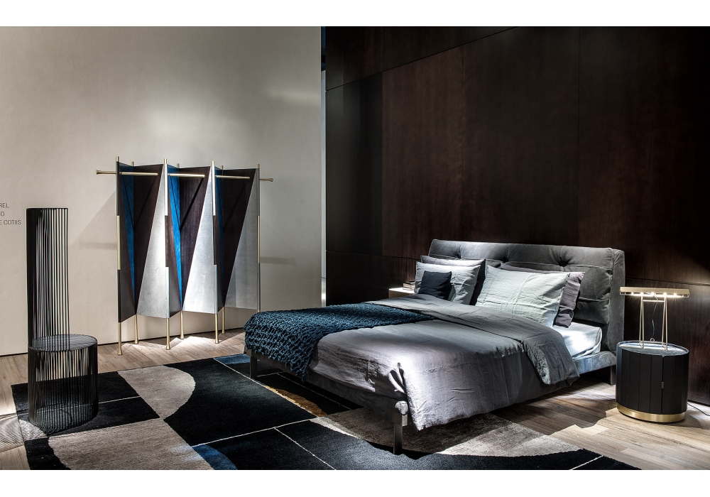 Viktor von Draga & Aurel für Baxter entworfen, ist ein ist ein Bett mit hohem Kopfteil in Leder erhältlich. Füße aus Metall.