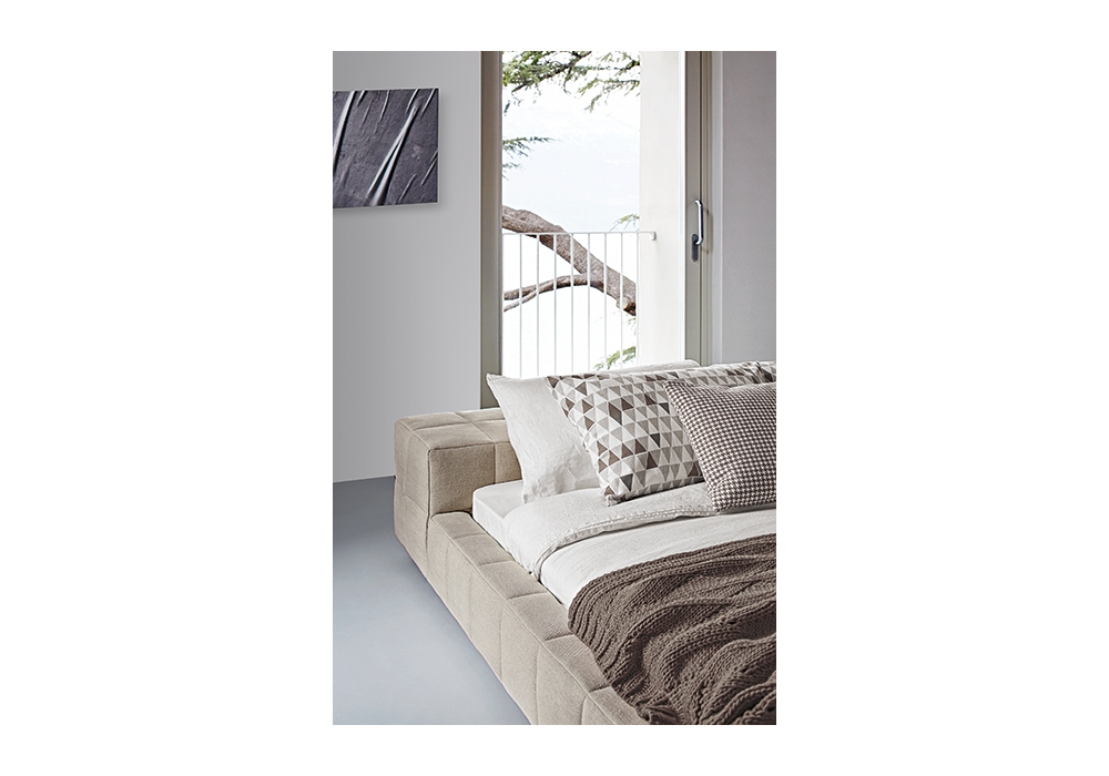 Squaring von Giuseppe Viganò für Bonaldo entworfen, ist ein Bett mit interner Holzstruktur mit Metalleckplatten. Die Polsterung besteht aus Polyurethanschaum unterschiedlicher Dichte mit einer Schicht aus gemischten Daunen. Die Polsterung ist in verschiedenen Stoffen und Farben erhältlich. Die Füße sind aus Holz in Anthrazitgrau matt lackiert, quadratisch oder rechteckig. Erhältlich in verschiedenen Ausführungen.