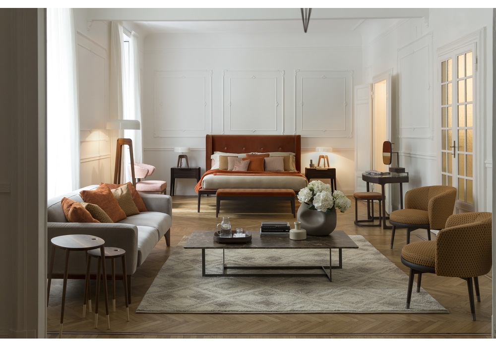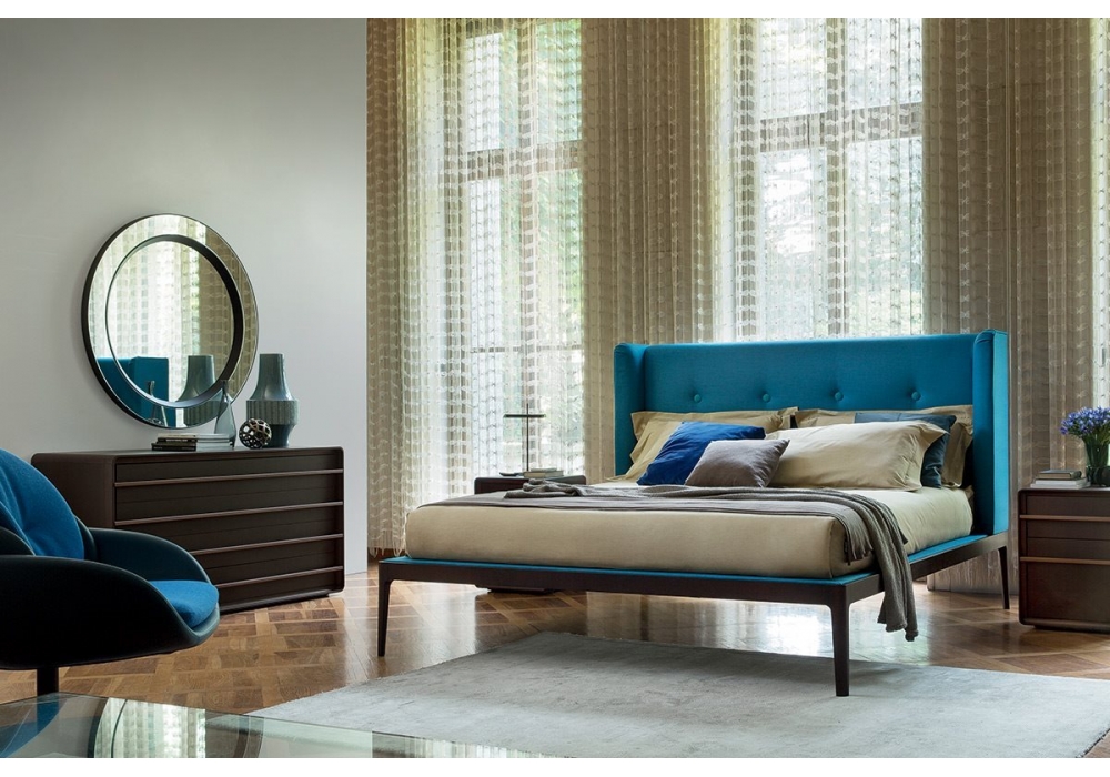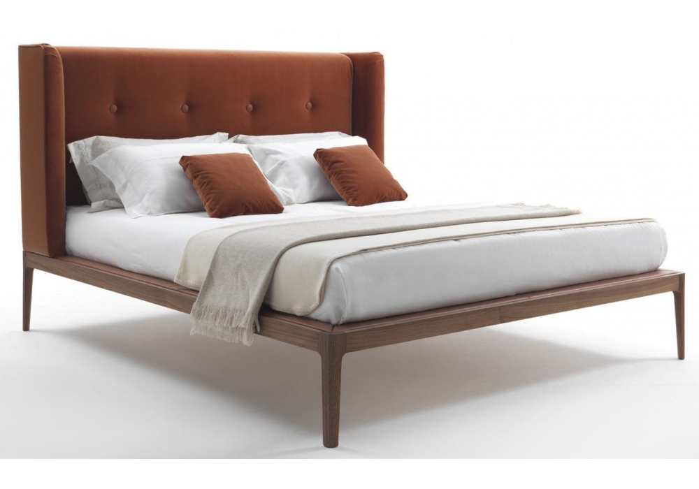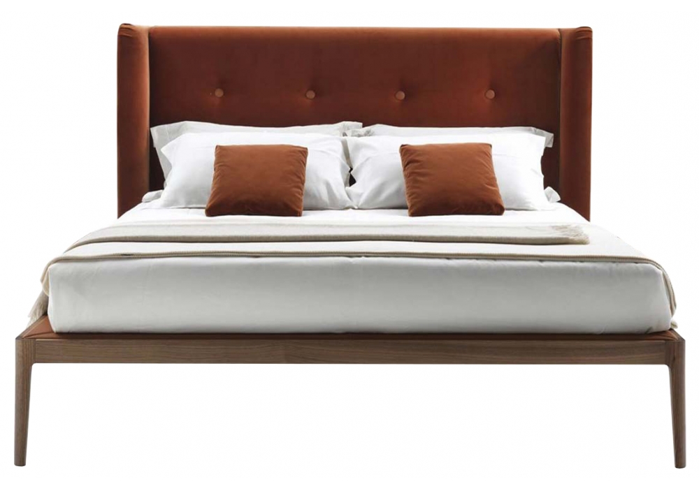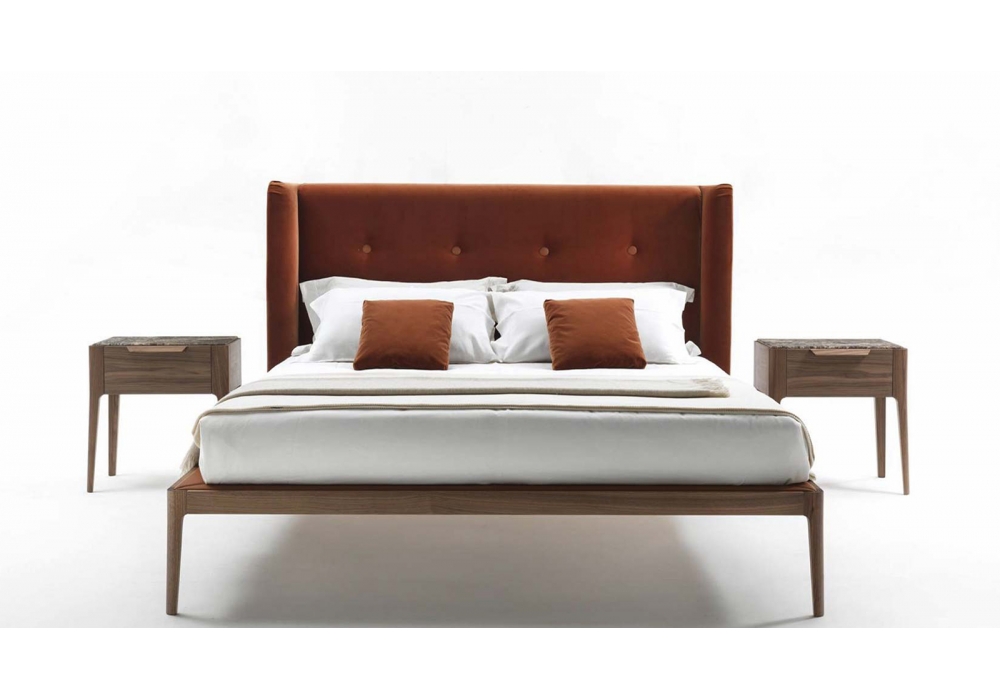 Ziggy Bed, von Carlo Ballabio für Porada entworfen, ist ein Bett mit Struktur in Canaletta Nussbaum verfügbar in verschiedenen Ausführungen. Polsterung des Kopfteils und des Lattenrosts aus Leder oder Stoff. Lattenrost inklusive. Matratze nicht inbegriffen.