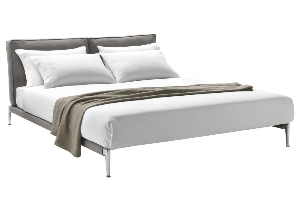 Adda, von Antonio Citterio für Flexform entworfen, ist ein Bett mit einem gepolsterten Kopfteil aus Polyurethanschaum. Füße aus Metall verfügbar in verschiedenen Ausführungen. Bezug aus Stoff oder Leder. Verfügbar in verschiedenen Abmessungen.