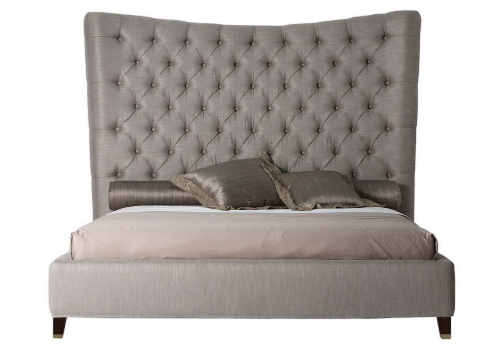 Tosca von Castello Lagravinese Studio für Opera Contemporary entworfen, ist ein Bett mit Füße aus Holz und Bezug verfügbar aus Stoff oder Leder. Seine Besonderheit sind die raffinierten Capitonnè-Arbeiten auf dem Kopfteil.