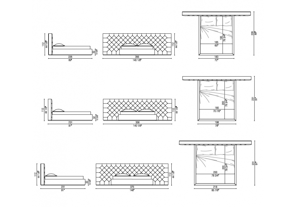 | Abmessungen | 356 x 226 x H 112 cm; 356 x 231 x H 112 cm; 376 x 231 x H 112 cm |