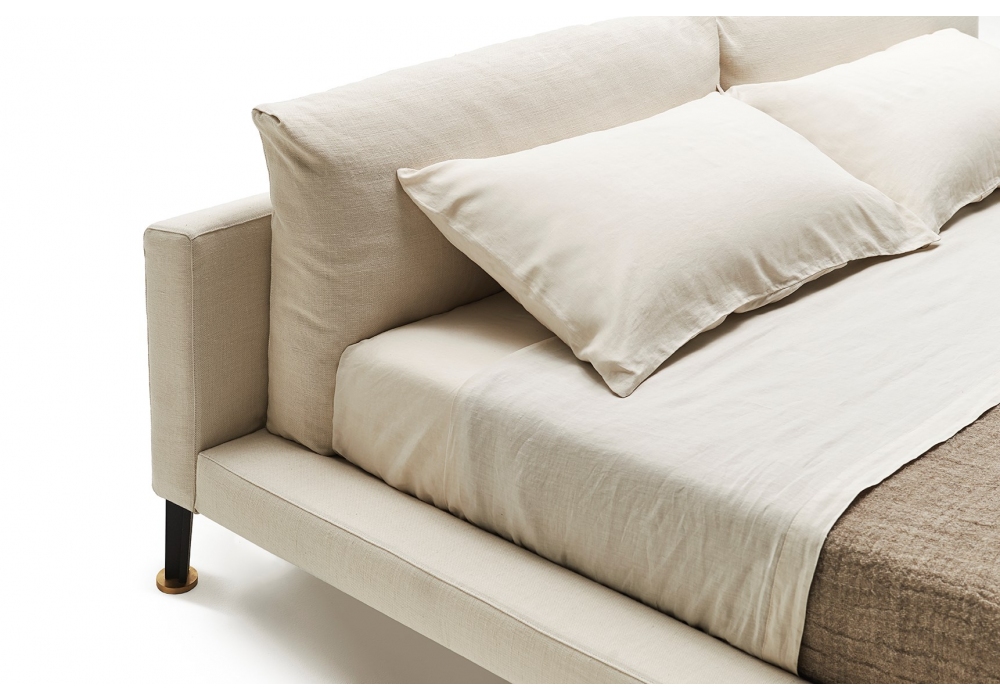 Floyd-Hi, entworfen von Piero Lissoni für Living Divani, ist ein Bett, das sich durch die Reinheit der Linien auszeichnet. Zwei große Kissen passen in das Kopfteil. Füße aus Metall In verschiedenen Größen mit Stoff- oder Lederbezügen erhältlich.