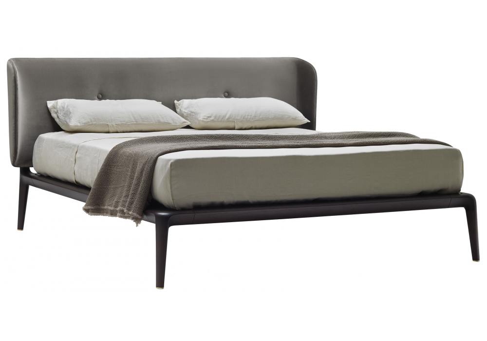 Sweet Dreams von DRAW für Ceccotti Collezioni entworfen, ist ein Bett aus massivem amerikanischem Nussbaumholz, Bettgestell aus furniertem Sperrholz, gepolstertes Kopfteil aus Stoff oder Leder. Messingdetails. Matratze nicht enthalten.