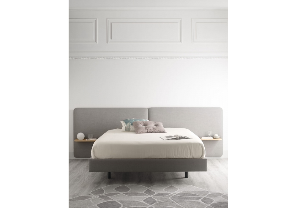Lota von Ibon Arrizabalaga für Treku entworfen, ist ein Bett mit der Struktur des Kopfteils und dem Bettrahmen aus Stoff. Erhältlich in zwei Versionen des Kopfteils mit 2 Doppelköpfen oder einem Einzel- und zwei Seitenköpfen. Die beiden Eichenregale sind im Lieferumfang enthalten. Netz und Matratze nicht enthalten.