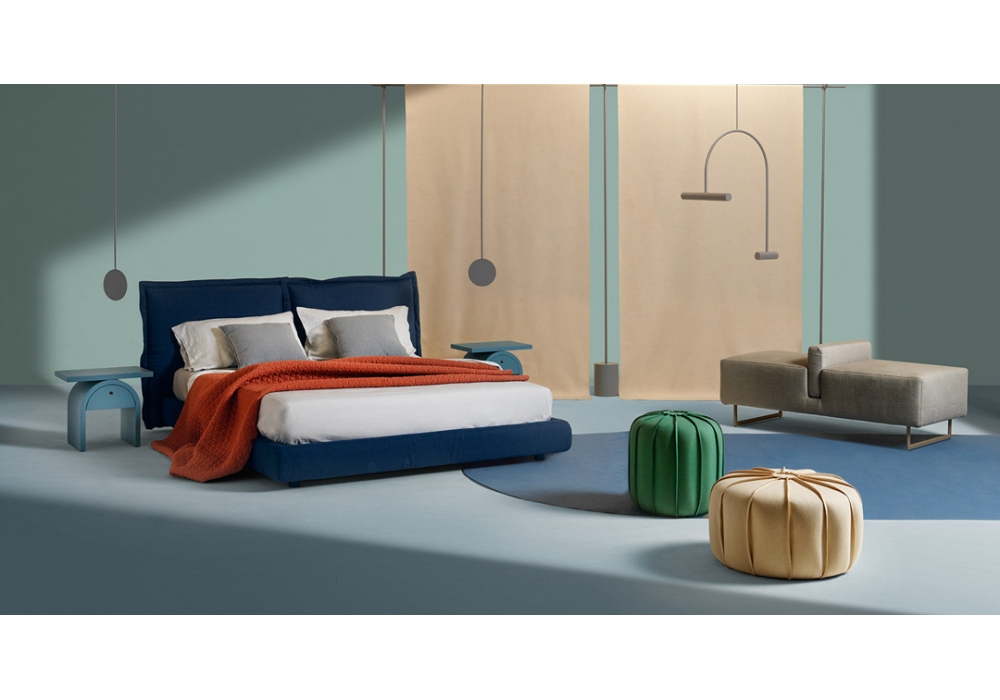 Face von Massimiliano Di Domenico für My Home Collection entworfen, ist ein Bett mit Kopfteil aus Holz und Bettrahmen, der mit Polyurethankautschuk und Polyesterfaser bezogen ist. Der Lattenrost ist aus Birkensperrholz mit gebogenen Latten mit Steifheitseinstellern im Lendenbereich. Der Bezug ist aus Stoff abnehmbar. Face ist in verschiedenen Belagsausführungen, Abmessungen und Ausführungen erhältlich.