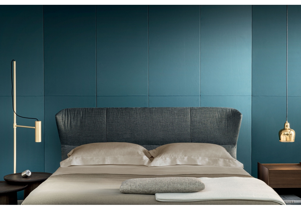 Azul von Nicola Gallizia für Molteni&C entworfen, ist ein Bett mit festem Bettrahmen mit schwarz lackierten Füßen oder Containerversion mit verchromten Stahlfüßen. Polsterung aus Stoff, Leder oder Leder. Verfügbar in mehreren Ausführungen und Abmessungen.
