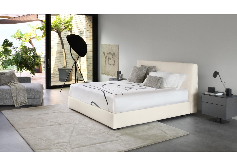 MyPlace, von Emanuela Garbin für Flou entworfen, ist ein Bett mit hoch gepolstertem Kopfteil mit Stoff- oder Lederbezug. MyPlace ist mit Boxspring Unterfederung Leonardo, Gestell H25 mit Federleisten mit Härteregulierung, zerlegbarem Bettkasten oder verstellbarem Lattenrost Motion 4 erhältlich.