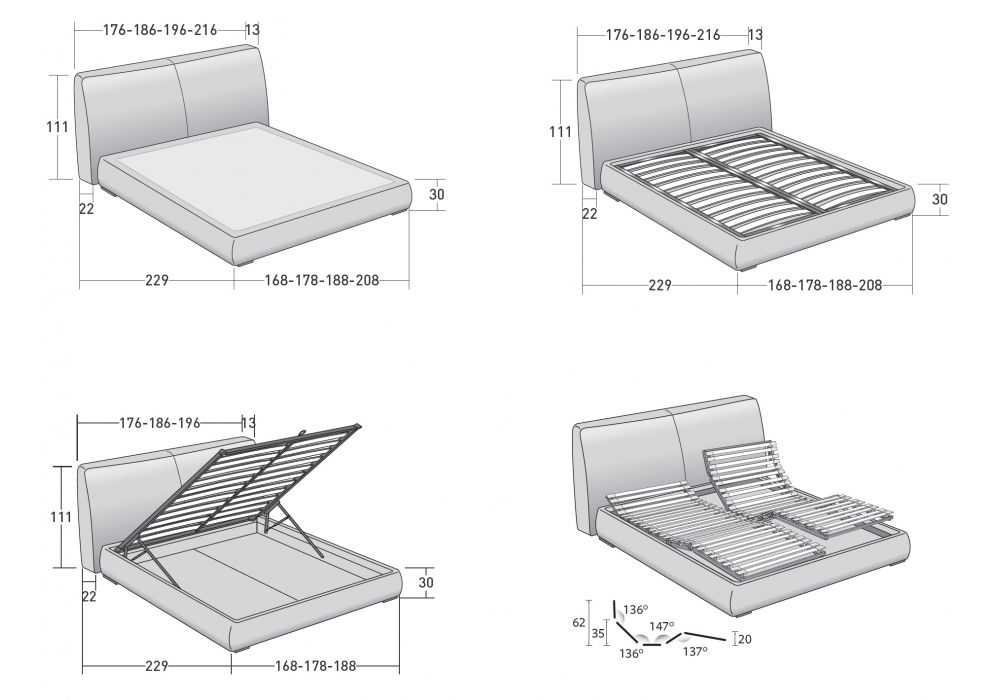 | Matratzengröße | 160 x 200 cm; 170 x 200 cm; 180 x 200 cm; 200 x 200 cm. |