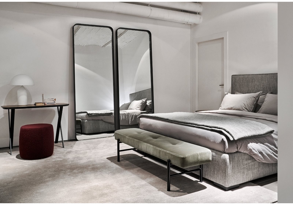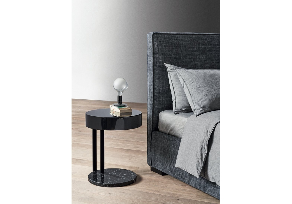Stone Plus von Andrea Parisio für Meridiani ist eine Gepolstertes Bett mit Abziehbarer Bezug und Fester Lederbezug. Demontierbare Bettseiten (gepolsterte Holzflächen) mit mittlerer Mittelstange aus Metall. Holzfüße gebeitz.
