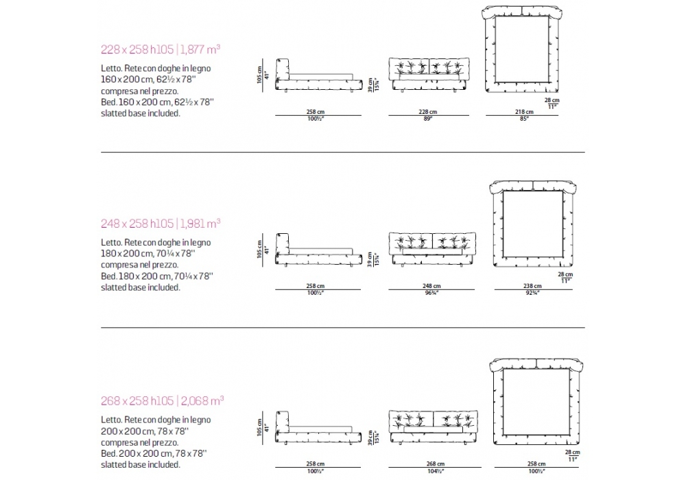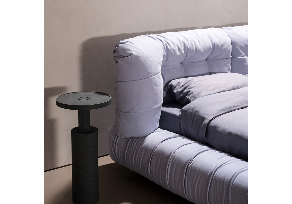 Milano von Paola Navone für Baxter entworfen, ist ein Bett mit Bettrahmen mit vier Seitenbändern in Kiefern- und Tannenwabenholz. Kopfteilstruktur aus Kiefern- und Tannensperrholz. Füllung aus Polyurethanschaum unterschiedlicher Dichte mit Acrylfaserabdeckungen. Lederbezogene Rückseite des Kopfteils. Dekoration mit gleichfarbigem Leder und passender oder weiß/roter Sehnsucht. Füße aus mattschwarz lackierter Buche. Nur in weichem Leder verfügbar.