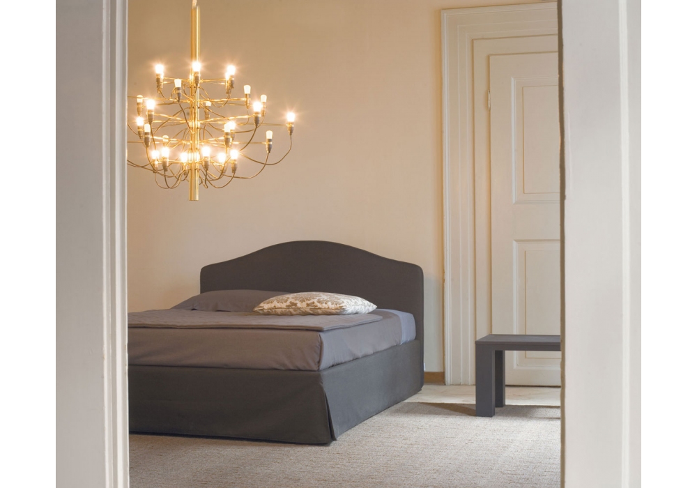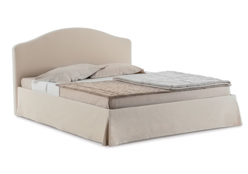 Elba Plus von Orizzonti Design Center für Casamania & Horm entworfen, ist ein gepolstertes Bett mit abnehmbarem Bezug aus Stoff oder Kunstleder. Fester Lattenrost, Bettrahmen außerhalb der Matratze und Füße aus Buchenholz im Preis inbegriffen. In verschiedenen Abmessungen erhältlich.