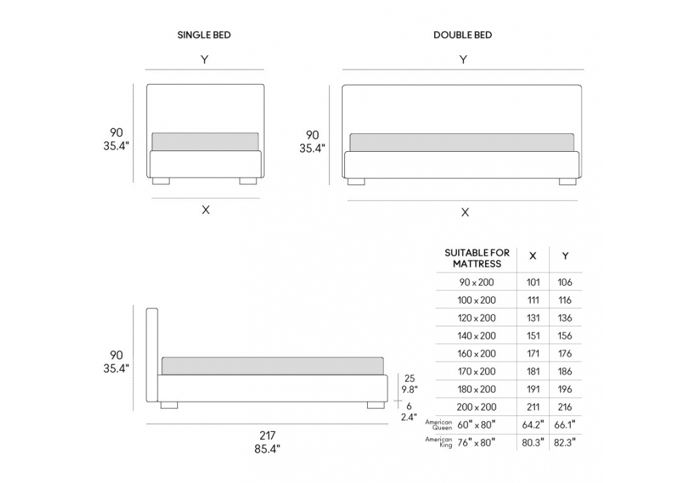Lipari von Orizzonti Design Center für Casamania & Horm entworfen, ist ein gepolstertes Bett mit abnehmbarem Bezug aus Stoff, Leder oder Kunstleder. Fester Lattenrost, Bettrahmen außerhalb der Matratze und Füße aus Buchenholz im Preis inbegriffen. In verschiedenen Abmessungen erhältlich.