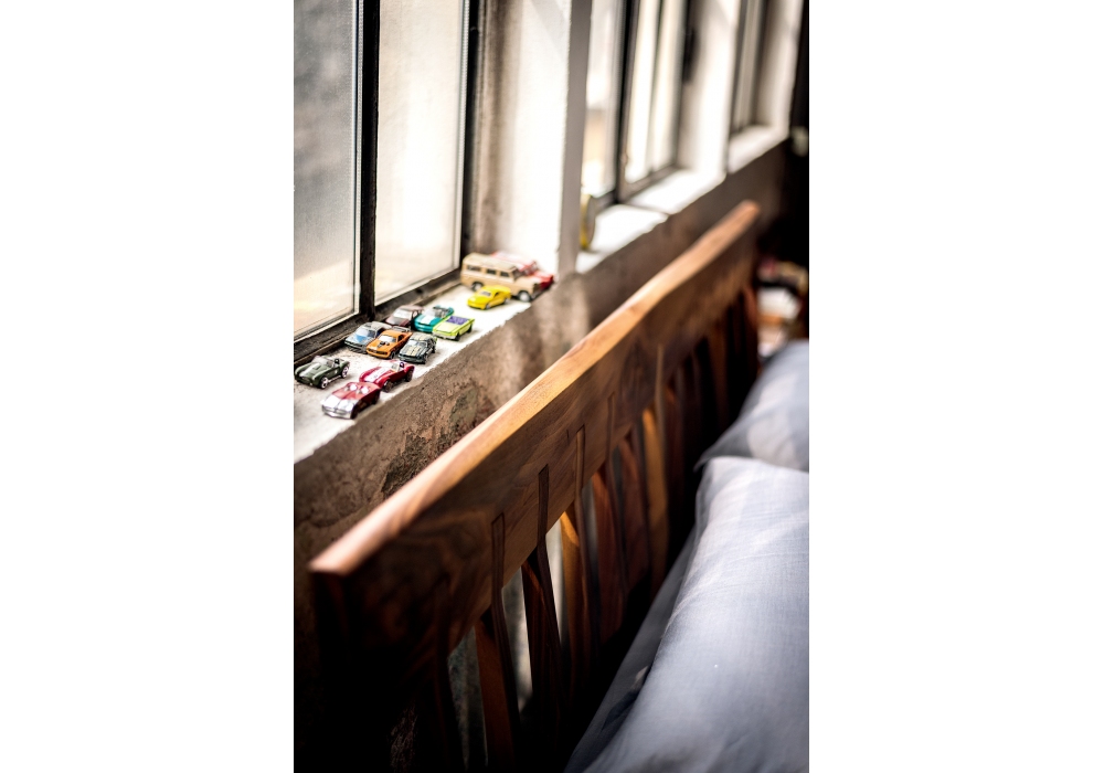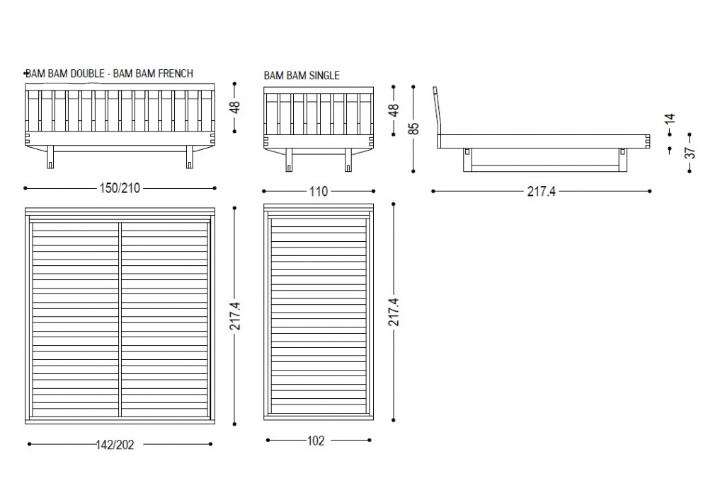 Bam Bam von Terry Dwan für Riva 1920 entworfen, ist ein Bett, das vollständig aus Massivholz besteht und sich durch eine handgefertigte Kammverbindung in Kombination mit einem Kopfteil mit Latten, die von einem Band mit natürlicher Kante umgeben sind, auszeichnet. Quadratische Linien für Struktur und Basis.