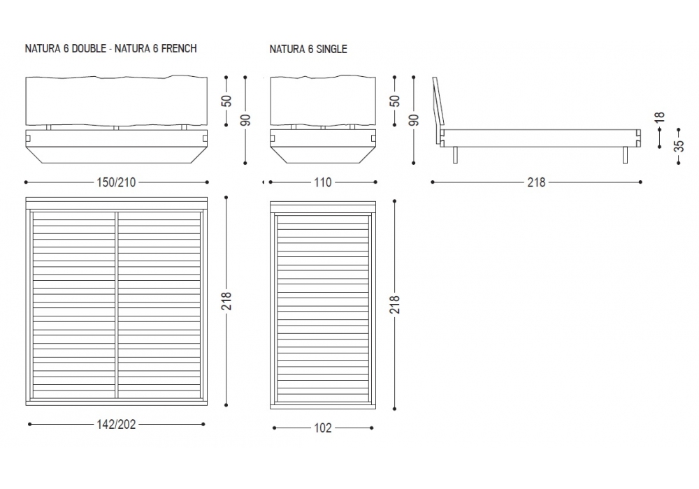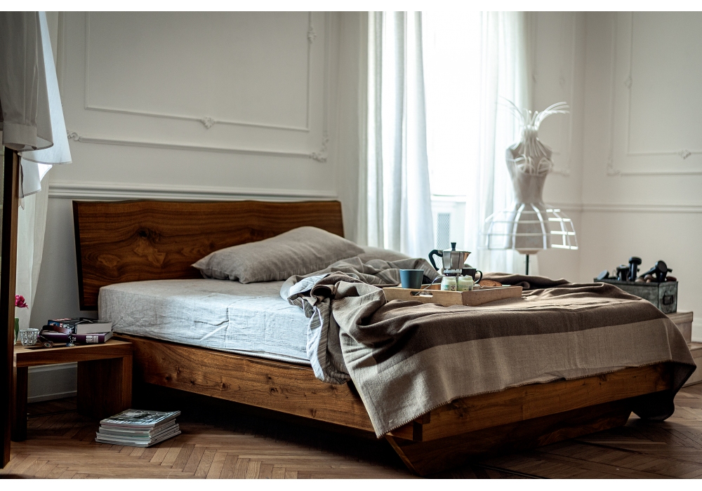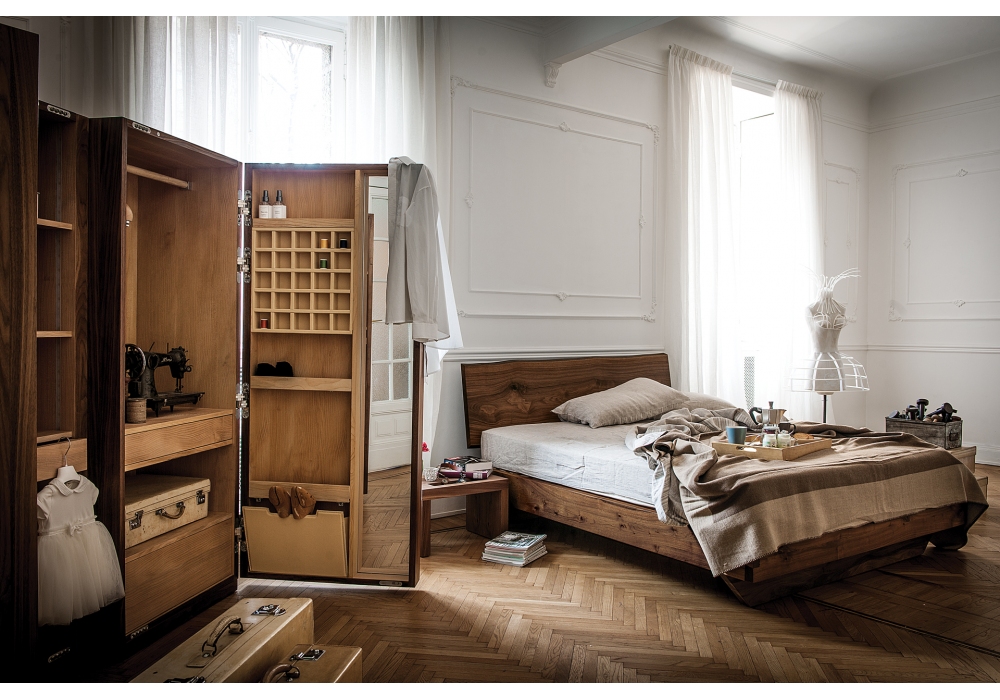 Natura 6 von C.R. & S. Riva 1920 entworfen, ist ein vollständig aus Massivholz gefertigtes Bett, das sich durch ein Kopfteil aus einem einzelnen Tisch mit natürlicher Oberkante und einem vollständig von Hand gefertigten Bettrahmen mit Kammverbindung auszeichnet.