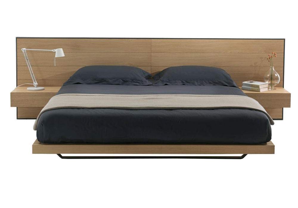 Rialto Bed von Giuliano Cappelletti für Riva 1920 entworfen, ist ein Bett aus furniertem Tischlerholz, bestehend aus einem Kopfteil, das von einer Eisenstruktur und einem Bettrahmen aus Massivholz eingerahmt wird, mit integrierten Nachttischen.