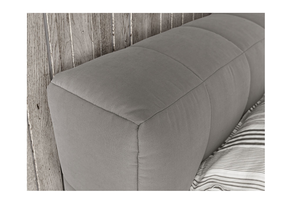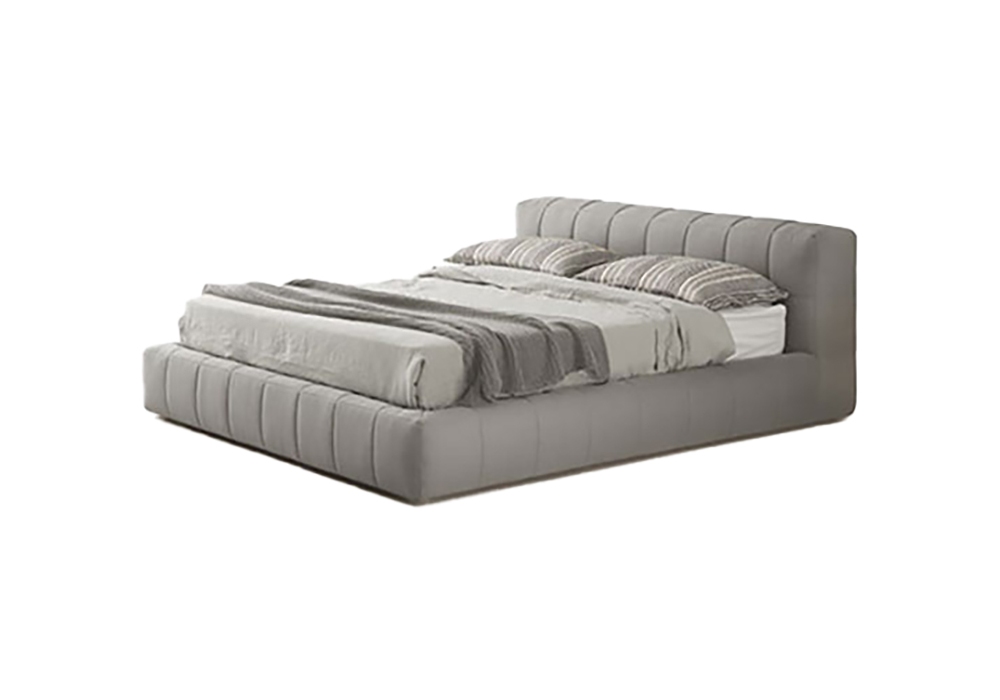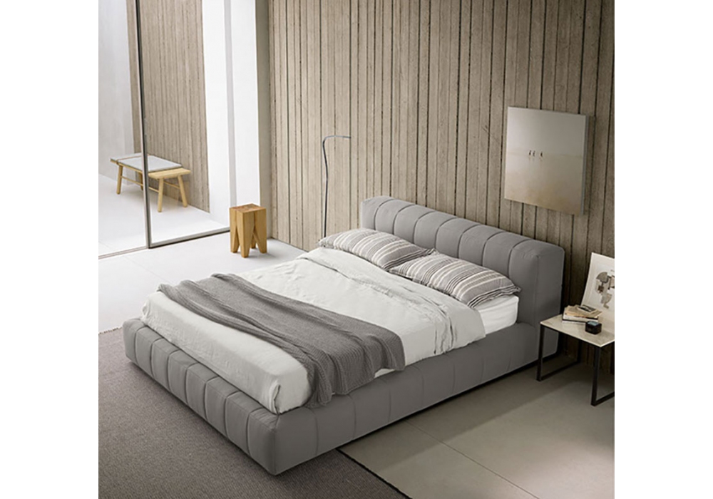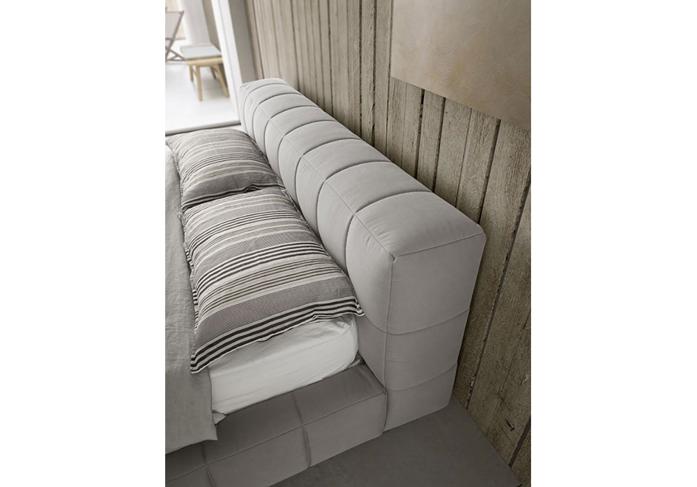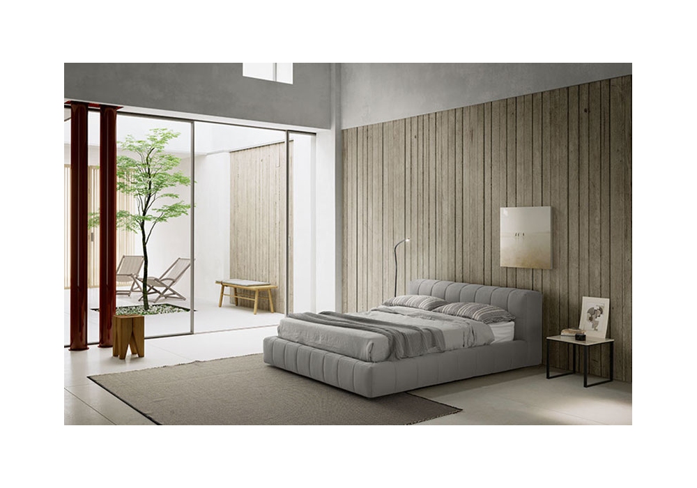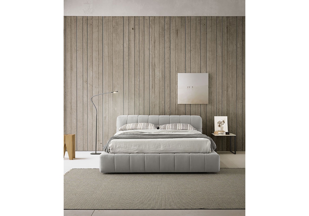 Terence, entworfen und hergestellt von Valentini, ist ein Bett mit einer Struktur aus Sperrholz, die mit Polyurethan überzogen ist, Bettgestell mit anatomischen Holzlatten. Erhältlich in verschiedenen Größen und in verschiedenen Ausführungen, vollständig abnehmbarer Stoff und Leder.