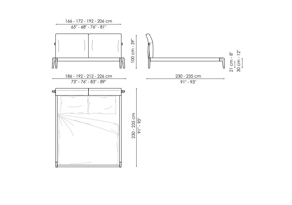 Kriss, von Maurizio & Silvia Varsi für Bonaldo entworfen, ist ein Bett mit Innenstruktur aus Holz, gepolstertem Kopfteil aus Polyurethanschaum unterschiedlicher Dichte und Bettrahmen aus Massivholz mit sichtbar geformten Füßen. Der Bezug ist abnehmbar und in verschiedenen Stoffen und Farben erhältlich. Das Bett wird in verschiedenen Größen hergestellt.