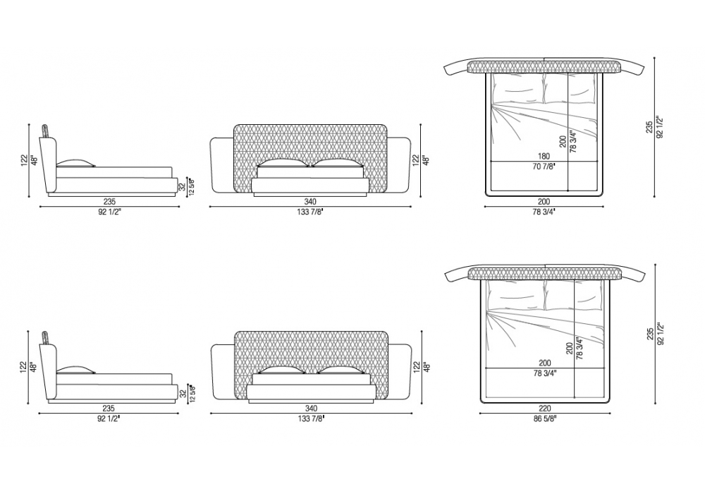 Sheila von Castello Lagravinese Studio für Opera Contemporary entworfen, ist ein Bett mit Buchenholzbasis und Stoff- oder Lederbezug. Bettgestell mit abnehmbarer Bezug nur in Stoff.