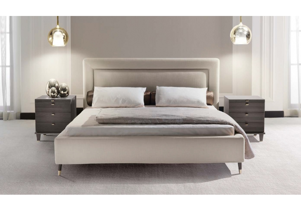 Ramiro von Opera Contemporary entworfen, ist ein Bett mit Stoff- oder Lederbezug und Eschenholzfüßen mit Metallspitzen. Verfügbar in mehreren Ausführungen und Abmessungen.