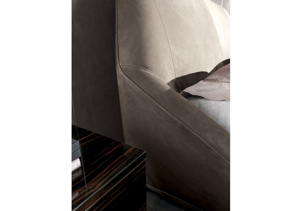 Yume von Margherita Fanti für Longhi entworfen, ist ein Bett mit Bodenverkleidung aus Metall mit glänzender oder matter Oberfläche und nicht abnehmbarem Stoff- oder Lederbezug. Der Kopf und die Basis sind durch einen Haken getrennt, um den Transport und die Montage zu erleichtern. Verfügbar in mehreren Abmessungen.
