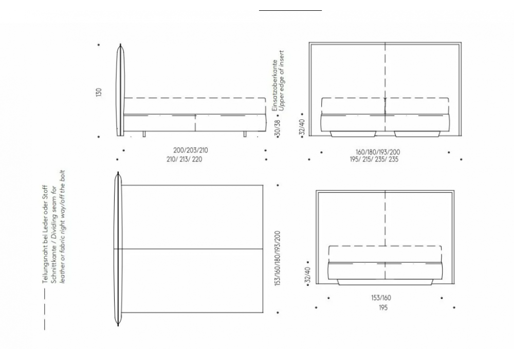 Heather von Wittmann ist ein klassisches Bett, das sich durch ein großformatiges Kopfteil auszeichnet und in zwei Versionen sowohl in der Standardhöhe von 130 cm als auch in der kürzeren Variante von 110 cm erhältlich ist. Erhältlich in verschiedenen Größen und Ausführungen.
