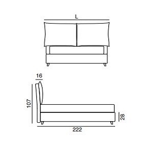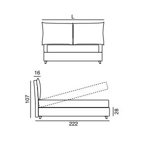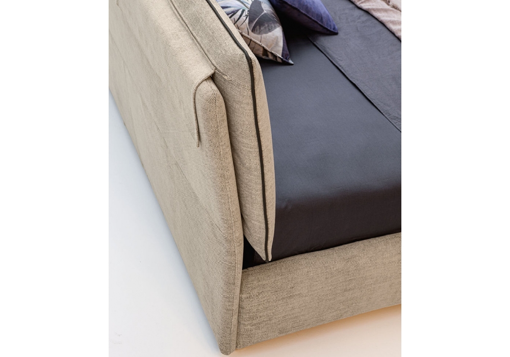 Blanca, entworfen und hergestellt von Twils, ist ein Polsterbett mit einem 28 cm hohen Bettrahmen, das in verschiedenen Modellen und Größen hergestellt wird. Der Bezug ist abnehmbar, in verschiedenen Stoffen und Farben. Die Füße sind rund geneigt (H 10 cm) in Perlmutt.