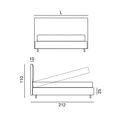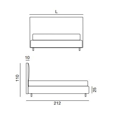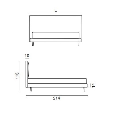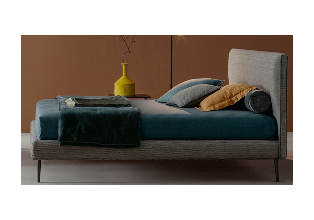 Dread, entworfen und hergestellt von Twils, ist ein Polsterbett mit einem 14 oder 25 cm hohen Bettrahmen, der in verschiedenen Größen hergestellt wird. Der abnehmbare Bezug ist in verschiedenen Stoffen und Farben erhältlich. Die Füße (PIE41) sind quadratisch geneigt in poliertem Aluminium-Finish (auf Anfrage auch in anderen Formen und Ausführungen erhältlich).